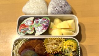 今日は来月から行う新入生勧誘の打ち合わせがあるらしい。ありあわせのものだけど、最終学年がんばれ!お弁当箱は、幼稚園からの愛用ミッフィーでした。お弁当メニューおにぎり2種(塩シャケ、わかめ)キャベツ、鶏からあげ、かぼちゃコロッケ、卵...