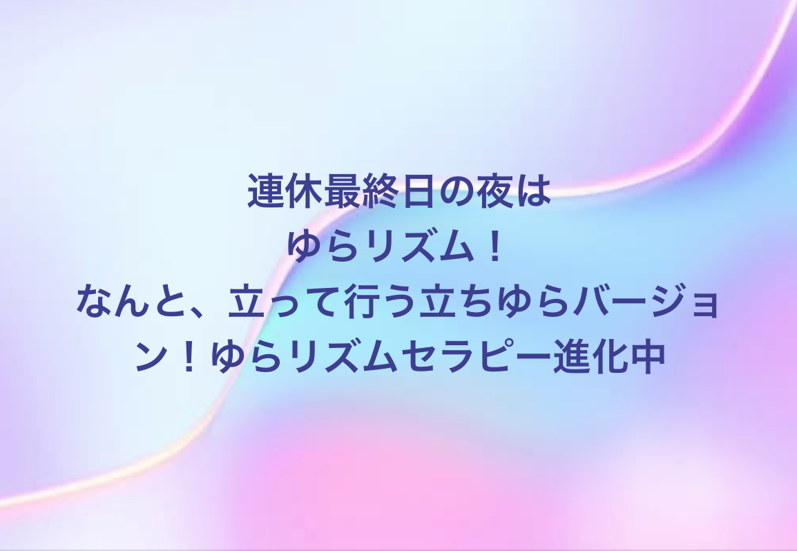 ゆらリズム進化中! ボディメイク Twitter Facebook はてブ Pocket LINE コピー 2025.10.18 2025.10.14 『ねながら』が基本ですが、イスを使って座りながらの『イスゆら』そして、立って行う『立ちゆら』いつでも、どこでもゆらリズム!