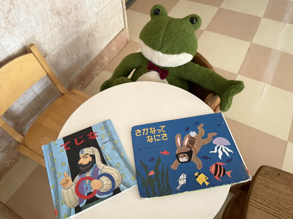 見守り読み聞かせ202510-2 えほん Twitter Facebook はてブ Pocket LINE コピー 2025.10.26 2025.10.23 昨日の見守り保育での読み聞かせは『てじな』でした。仕掛け絵本的なもので、ページを行ったりきたりしながら、楽しみます。ただし、ヒゲのおじさんは年中女子には不評。やはりマジシャンもかっこいいお兄さんが受けそうです。さかなってなにさは興味すら持ってもらえず、残念。#見守り保育#幼稚園児#絵本#読み聞かせ#てじな