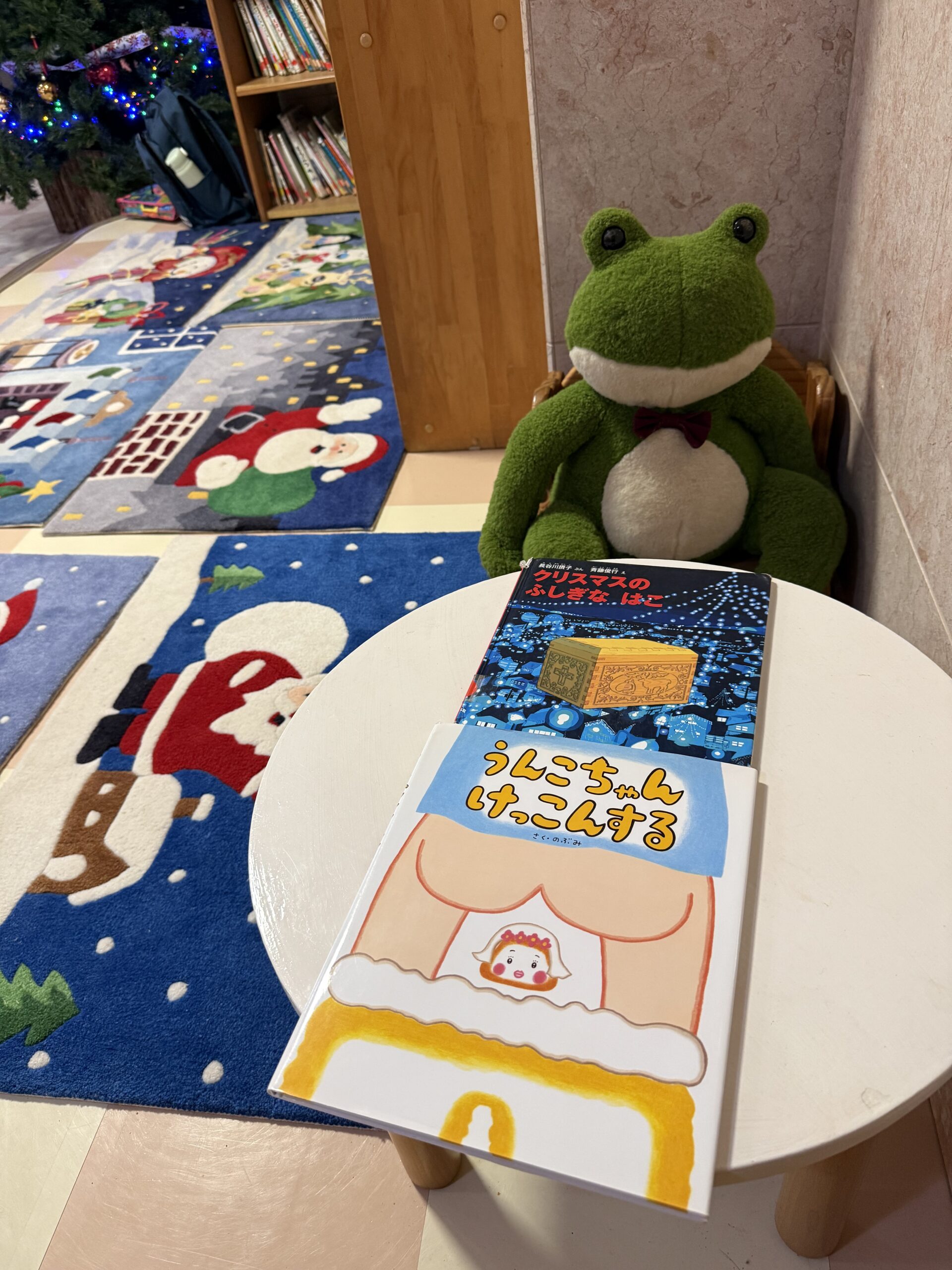 今週の読み聞かせすっかりクリスマスデコレーションになっている幼稚園!