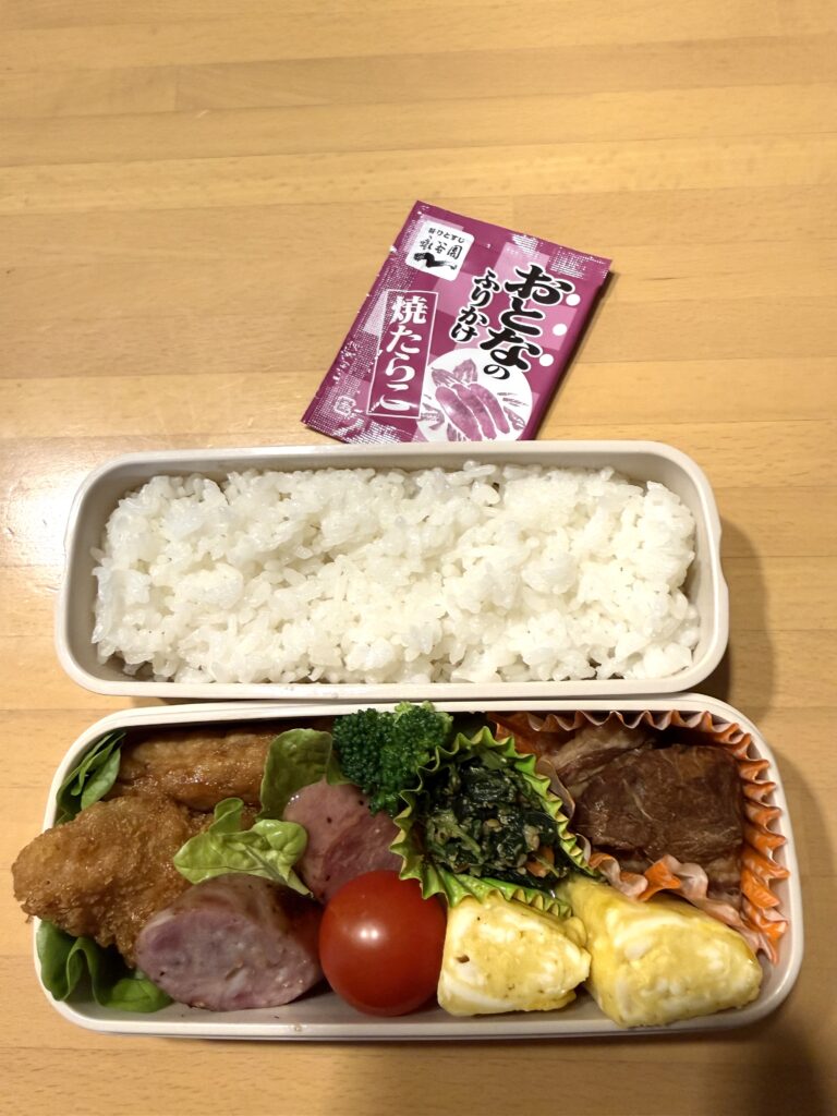 部活応援弁当20251221 おべんとう Twitter Facebook はてブ Pocket LINE コピー 2025.12.23 2025.12.21 日曜日だけど、今日も部活!1月の合同コンサートのゲネプロだそう。がんばれ中学生!!『ママ、みんな下の段はごはんを入れてるよ。デザートは入れてない』というので、初めてごはんを下に詰めてみた。足りなさそうで不安ですが。。。お弁当メニューごはん、ふりかけ、白身魚フライ、つくね、ウィンナー、卵焼き、豚角煮、レタス、ブロッコリー、プチトマト、ほうれん草の胡麻和え#部活応援弁当#中学生#吹奏楽部