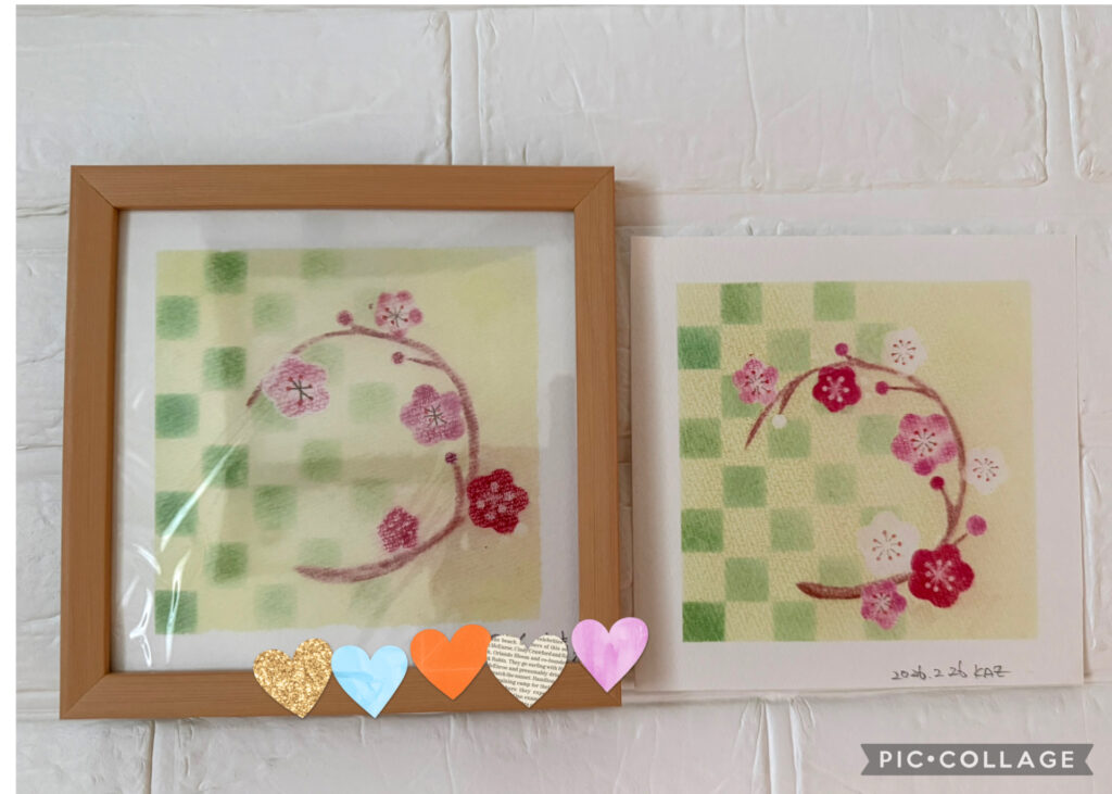 昨日の午後は季節のテーマ講座。梅の花輪を描きました。