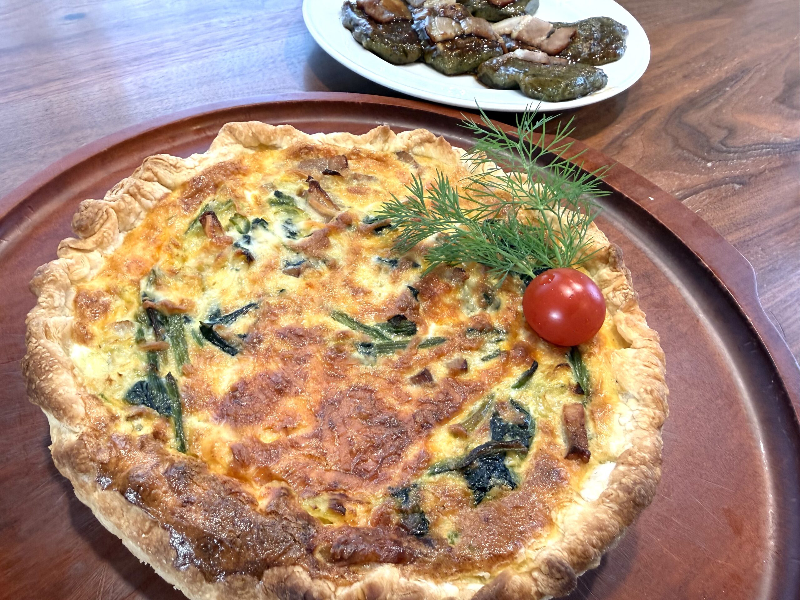 最後の朝食はほうれん草とベーコンのキッシュと義父の打ってくれたお蕎麦、そして餅べー。